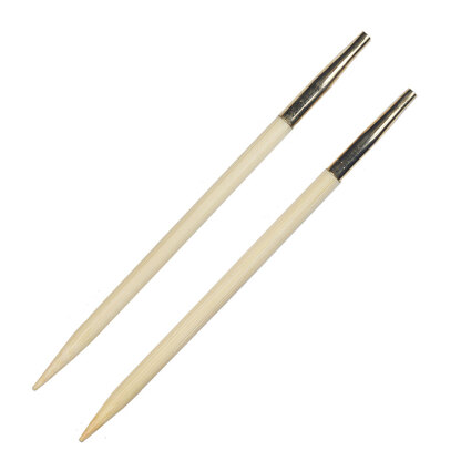 Knitter's Pride Bamboo Interchangeable Knitting Needle Tips are made of sturdy bamboo, which is also lightweight, quiet to knit with and warm in the hands. Tips for US sizes 2.5 through 11 are 4.5" long; Tips for US sizes 13 through 15 are 5" long.