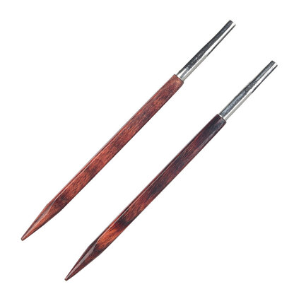 Knitter's Pride Cubics Interchangeable Circular Needle Tips have a cuboid shape in the body of the needle that gradually gives way to perfectly tapered birch wood points. The ergonomic shape is comfortable to hold, lessens the need to grip tightly, and yields uniform stitch formation. The densified, laminated wood is rich in appearance, yet it is also lightweight, strong, flexible, and warm to the touch. Needle size is measured diagonally and fits into standard needle sizer just like round needles. These 4.5" tips are a great addition to one of the other Knitter's Pride Interchangeable Circular Needle sets, or just pair with a Knitter's Pride cable set and start knitting. It's best to tighten your needles by holding the base. Click here to see how it's done.