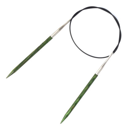 Knitter's Pride Dreamz Fixed Circulars have a flexible cable with needle tips made from laminated birch wood in different colors based on size. The needle size is etched on the metal needle base for easy identification. These needles are also available in 16", 32", 40" and 47" lengths. Dreamz 24" Fixed Circular Needles have a 13.9" cord joining two 5.05" tips (sizes up to US 13), 5.4" tips (US 15), and 5.6" tips (US 17 and 19).