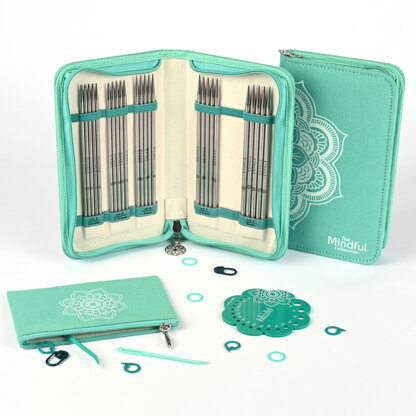 Knitter's Pride Mindful Collection Lace Double Point Needle Set - Compassion brings you 5 sizes of 6" long double pointed needles perfect for sport, DK, and worsted weight projects. Tackle hats, sweater sleeves, I-cord, and more with these versatile needles. With superior stainless steel material and perfectly crafted tips, these needles will be a pleasure to use for any of your small circumference projects! The Compassion Set includes sizes US 4, 5, 6, 7, and 8 (3.50, 3.75, 4.00, 4.50, and 5.00mm) and a convenient zip-close case.