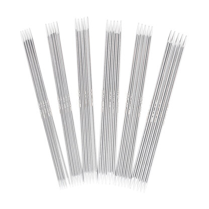 The Knitter's Pride Nova Platina Double Pointed Needle Set 6" includes 6 sizes – 5 needles in each of the following sizes: US sizes 0 (2.0mm), 1 (2.25mm), 1.5 (2.5mm), 2 (2.75mm), 2.5 (3.0mm), and 3 (3.25mm). Nova Platinas are chrome-plated and have newly remodeled tips that are pointier and more tapered, making them a great choice for both regular and lace knitting. The chrome finish makes these needles very smooth to work with - it also provides resistance to corrosion & is easy to clean! The set comes in a clear vinyl case.