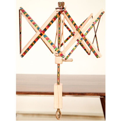 The Knitter’s Pride Signature Wooden Swift is made with a combination of natural and colorful laminated birch wood. This essential tool for spinners, weavers, and dyers helps you get to crafting faster and saves you from using the back of chairs or the hands of family and friends to wind hanks and skeins into a ball! The Signature Wooden Swift has a super smooth finish and quick rotation. It opens to 60” and the clamp opening is 1½”.