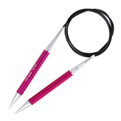 Knitter’s Pride Zing 40” Fixed Circular Needles come in US sizes 0 through 13. Zing fixed circular needles are vibrant color-coded aluminum needles that allow your yarn to slip easily as you work. They are color-coded by size making it easy to identify and organize your needles. These lightweight aluminum circulars feature durable, flexible cables with a smooth join for easy, no-snag knitting. These needles are also available in 16”, 24”, 32” and 47” lengths. Zing 40" Fixed Circular Needles have a 29.9" cord joining two 5.05" tips.