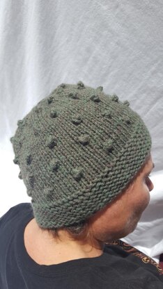 This is a fun winter hat to knit. The brim is garter stitch and the hat is the simple knot stitch. Quick pattern to knit. Would make a great project for gifts!