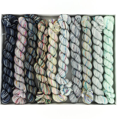 Koigu KPPPM Pencil Box Set - WEBS Exclusive is the mini-hank collection you've been waiting for! KPPPM Pencil Box Set is the perfect way to get your gradient on with 10, 25g KPPPM (Painter's Palette Premium Merino) hanks that are perfect for striping. Hand-painted, 100% merino wool fingering weight yarn lends itself to absolutely stunning projects such as shawls, scarves & socks. Be sure to check out the recommended patterns below! Note: Patterns are sold separately from Pencil Box Set.