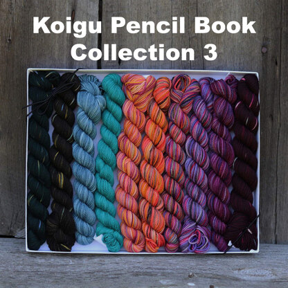 The Koigu Pencil Box Collection 3.0 eBook is a collaboration with 10 designers using Koigu’s KPPPM Pencil Box Set that are packs of ten 25g skeins of KPPPM in different variegated colorways. This collection includes a variety of wraps, a scarf, a capelet, a hat, a pair of fingerless mitts, a pullover, a pillow cover, and a baby cardigan. Koigu’s KPPPM (Painter’s Palette Premium Merino) in brilliant hand-painted, 100% Merino wool fingering weight yarn.