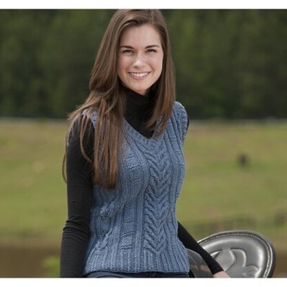 His or Hers is a lovely, cabled, v-neck vest. Knit with Kollage Riveting Worsted makes a cool year round sweater vest.
