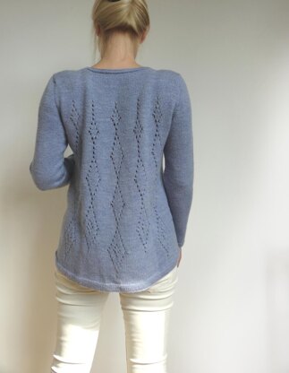 La Lancia features a a playful lance pattern at the back contrasting with a plain front . The lace pattern creates a slight A-line shaping and a longer back ensures a flattering silhouette. Optional bust darts and waist shaping provide a perfect fit at the front combined with a flattering swingy back.