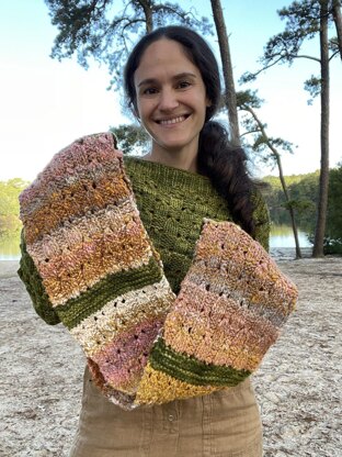 The Lace Checks Cowl is a simple, cozy layering piece perfect for keeping you warm in the fall and winter! The long cowl can be worn draped around your neck hanging long, or can be folded and looped around twice for a cozy, thicker fit around your neck. The body of the cowl features a checkered textured pattern with eyelets and sections of garter stitch makes for a fun-to-knit and easy-to-memorize pattern. Knit up in a mixture of hand spun and mill spun yarns, the Lace Checks Cowl is the perfect pattern for showing off special yarns and playing with color!