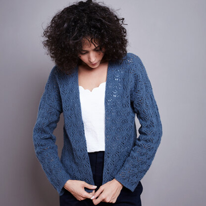 LAMANA 09/06 Cardigan is a fabulous women’s sweater featuring a v-neck with an allover lace pattern that is asking to be noticed knit in Modena and Milano held together throughout. The cardigan is knit flat in pieces from the bottom up and then seamed. Laceweight Modena from LAMANA will wrap you in luxury with this sumptuous blend of cashmere and superfine merino, and Milano is a fingering weight yarn that combines cashmere and superfine Merino.