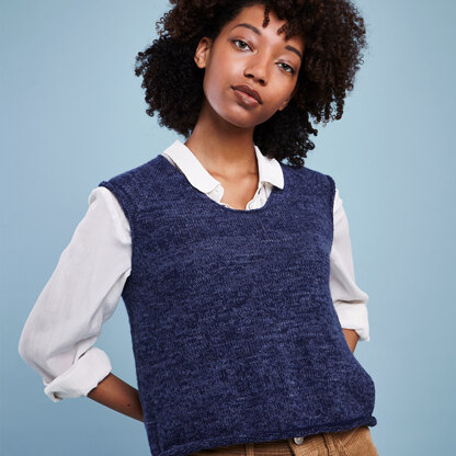 09/13 Vest is a women’s sweater with a modern interpretation of a classic. The top-down