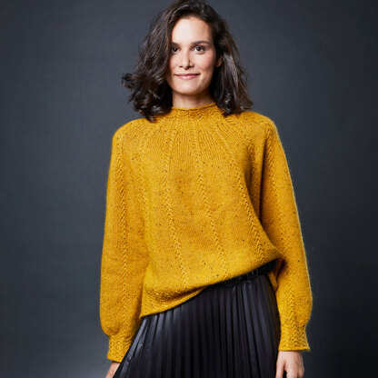 5 balls for all sizes LAMANA Premia (60% Super Kid Mohair/ 40% Silk; 25g/328yds) shown in 67 Mustard
