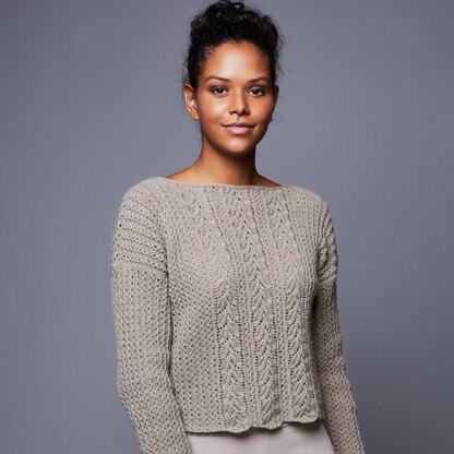 LAMANA 11/13 Liv Pullover is a fabulous women’s pullover featuring an I-cord-edged boat neckline and dropped shoulders, with several lace patterns knit in Milano. The sweater is knit flat in pieces from the bottom up and then seamed. Milano from LAMANA for luxury fingering weight yarn that combines cashmere and superfine Merino in a machine-washable yarn. The textured lace pattern is charted and written out, and the center lace panel is in chart form only.