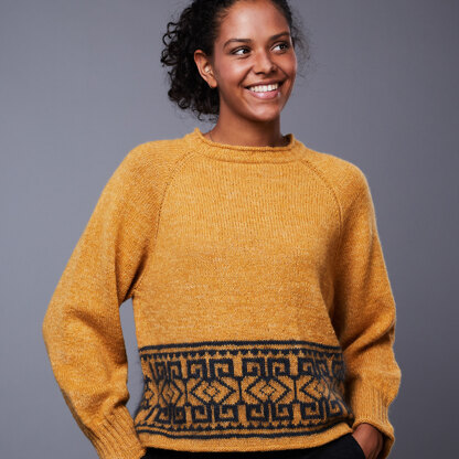 LAMANA 11/15 Imala Pullover is a lovely women’s pullover perfect for weekends featuring a raglan sleeve with a colorwork and textured border design knit with a strand of Milano and Modena together and 3 strands of Premia held together for the colorwork pattern. The sweater is worked in the round from the top down with some seaming. Milano from LAMANA for luxury fingering weight yarn that combines cashmere and superfine Merino in a machine-washable yarn. Luxurious Piura Arte is soft as a cloud, and Premia is an amazingly soft blend of mohair and silk that you need to feel to believe! The colorwork patterns are in chart form only.