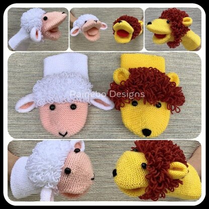 Lambell & Lionel Hand Puppets are knit in the round, (Intermediate Level), using Magic Loop (or double pointed needles). They are approx. 9”-10” long, 9” circumference, and one size fits most. They are created using #3-light wt. (DK wt.) yarn and size 3 (3.25mm) 32” Circular Knitting Needles (if using Magic Loop). Easy to slip on and can create lots of playtime fun!
