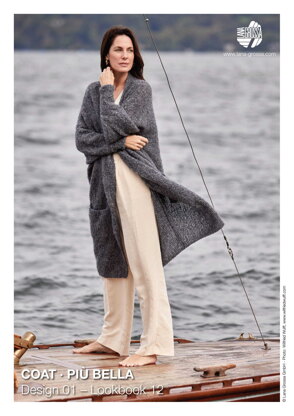 Lana Grossa Coat in Più Bella is a lovely longline jacket featuring dropped shoulders with dolman sleeves and pockets. The sweater is knit flat in pieces from the bottom up and then seamed. Più Bella from Lana Grossa is a lighter than air yarn! This soft and fluffy yarn is available in great colors; you can use it time and again and never get bored!