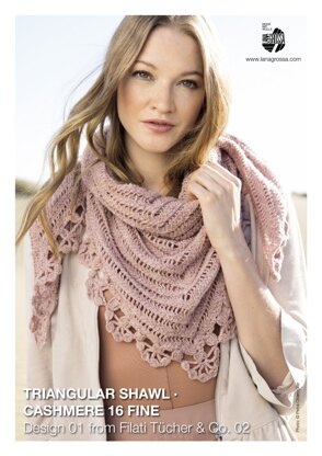 Lana Grossa 01 Triangular Shawl in Cashmere 16 Fine PDF is a Crochet, Knitting pattern by Lana Grossa, available as a Downloadable PDF. Super fun to make, this pattern could be your next masterpiece!