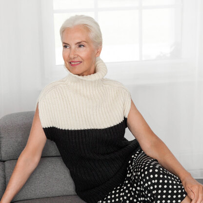 and is a must-have in your wardrobe. The two-tone pullover is knit flat in