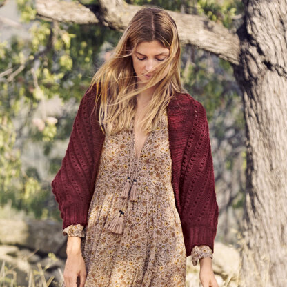 knitting pattern for a lovely women’s shrug that is knit from cuff to cuff in a