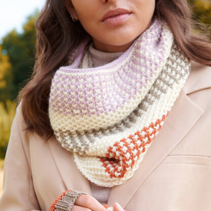 Lana Grossa Cowl in Landlust Alpaka Merino 100 is a lovely accessory with texture and color. The cowl is knit in the round seamlessly from the bottom up, using three colors to create the stripe pattern. Make it a set by purchasing the hat pattern separately. Landlust Alpaka Merino 100 by Lana Grossa has a beautiful color range and soft touch. This worsted weight yarn is ideal for color-work projects or single-color accessories. The textured pattern is in written form only.