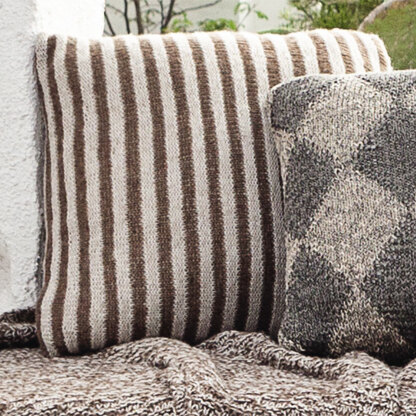 Lana Grossa Pillow Cover in Ecopuno has stripes that compliment the Blanket