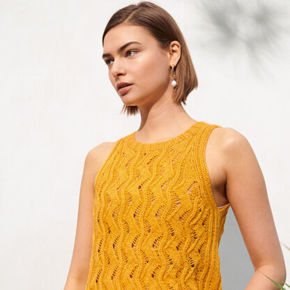 Yarn Requirements: 7 balls Lana Grossa Linarte (40% Rayon/ 30% Cotton/ 20% Linen/ 10% Polyamide; 50g/136yds) shown in 307 Yellow (WEBS do not carry this color)