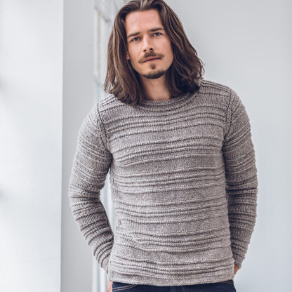 a stunning sweater with a cross-ribbed stitch pattern. The pullover is knit
