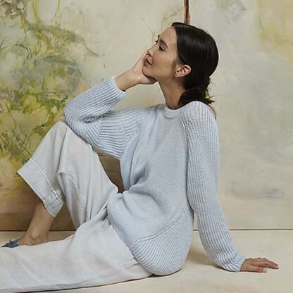 in a half-brioche rib pattern. The pullover is knit flat in pieces from the