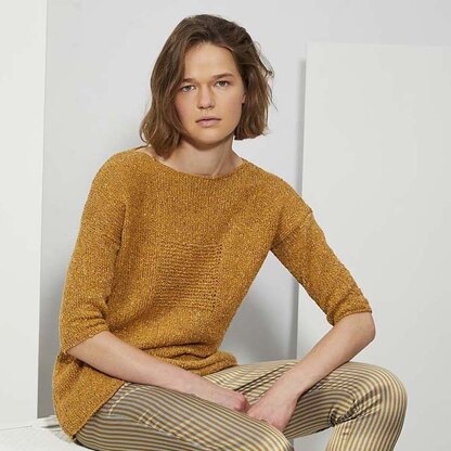 Yarn Requirements: 6 (7) balls Lang Kylie (56% Cotton/ 25% Silk/ 13% Wool/ 6% Viscose; 50g/164yds) shown 50 Mustard (WEBS do not carry this color)