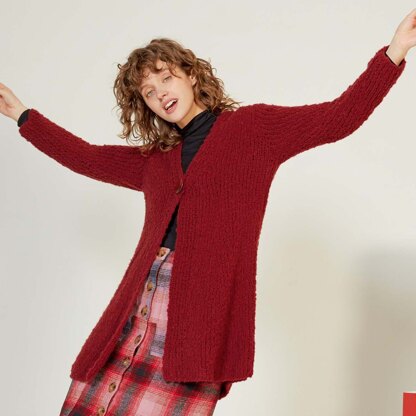 Lang 274-69 Cardigan is a simple squishy soft women’s long A-line sweater knit in Phoenix. The cardigan features a single button closure with a deep v-neckline and set-in long sleeves and is knit flat in pieces from the bottom up and then seamed. Phoenix by Lang Yarns is a light and soft yarn that, once you touch it, you will want more! The yarn will keep you coming back for all your winter projects!