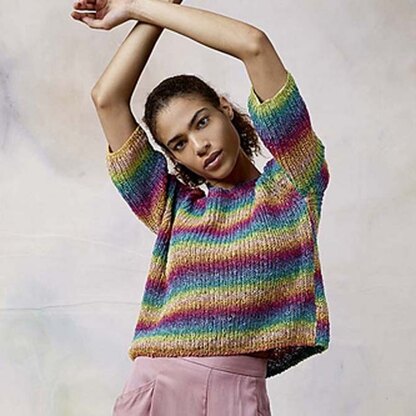neckline and short sleeves in a half-brioche rib pattern. This pullover is knit