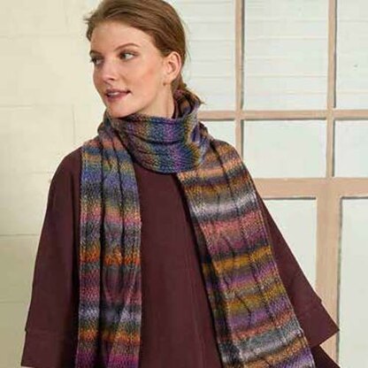 Lang PTO30-09 Scarf is a gorgeous accessory perfect for gift giving to a great friend or family member knit in Frida. The scarf features a stunning diamond cable panel flagged by a moss stitch pattern on both sides. The accessory is knit flat from the bottom up seamlessly. Frida by Lang Yarns has beautiful colors inspired by the beautiful works of Frida Kahlo. This yarn stripes in color combinations reminiscent of Kahlo’s painting and is sure to delight. The diamond cable pattern is in chart form only.