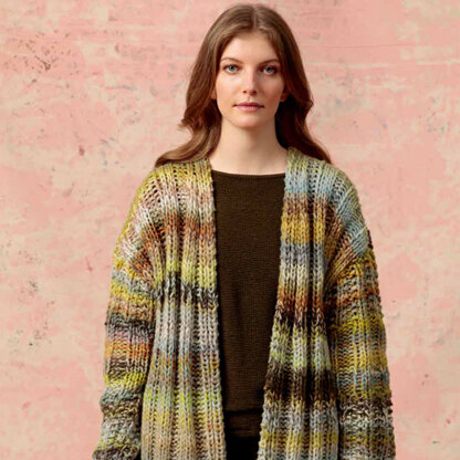Lang PTO31-11 Jacket is a simple yet stunning woman’s longline cardigan knit in Cloud. This fast and easy jacket is knit with two strands of yarn held together and knit in pieces from the bottom up and then seamed. Cloud by Lang Yarns is a light and airy bulky weight yarn. The colorful striping gives any garment a wow factor that looks impressive. Cloud comes in a generous 284 yards per 100 gram means you’ll have fewer ends to weave in at the end of this project!