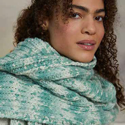 Lang PTO33-02 Stole is a lovely yet simple half brioche rib that is a quick knit accessory worked in Snowflake. The wrap is knit flat seamlessly from end to end. Snowflake by Lang Yarns has the same fluffy and light texture as a real snowflake! This yarn uses a special spinning process to make the fun and unique color patterning.