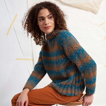 Lang PTO43-10 Sweater is a stunning women’s pullover knit in Bergen. The sweater features a mock turtleneck with long raglan sleeves and a fabulous ribbed pattern at the bottom half of the sweater’s body. The pullover is knit flat from the bottom up and then seamed. The neckband stitches are picked up along the neck edge and worked in the round. Bergen by Lang Yarns is a fun and lightweight yarn! This yarn has a chainette construction with bright and bold colors, and it is sure to make your project fun!
