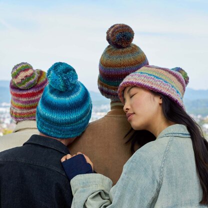 Lang PTO45-12 Hat is a fun and colorful woman’s accessory knit in Cloud. You’ll want this hat for gifting to all your favorite people. The cap is knit in the round seamlessly from the brim to the crown and finished with a pompom. Cloud by Lang Yarns is a light, and airy bulky weight, blown yarn. The colorful striping gives any garment a wow factor that looks impressive.