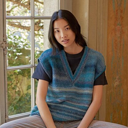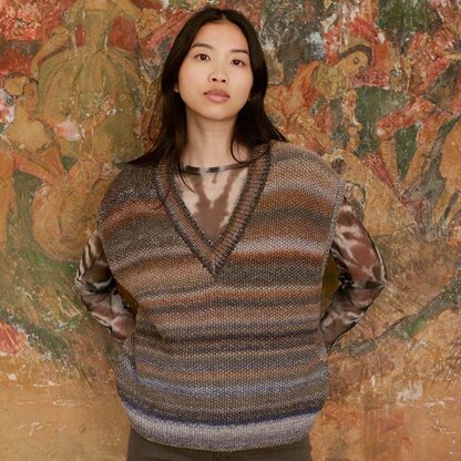 Lang PTO46-03 Vest is a stunning women’s oversized sweater knit in Frida’s self-striping yarn. The vest features dropped shoulders and a v-neckline with an all-over seed stitch pattern. You’ll want this in several colorways as it is the perfect layering piece over your favorite tee or turtleneck. Frida by Lang Yarns has beautiful colors inspired by the beautiful works of Frida Kahlo. This yarn stripes in color combinations reminiscent of Kahlo’s painting and is sure to delight.
