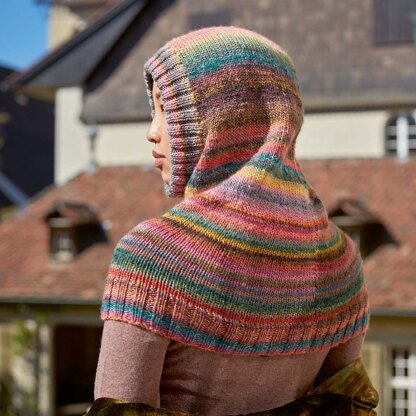 Lang PTO46-08 Hood is a stunning woman’s hat knit in Frida, a self-striping yarn that will keep you stylish and warm. The hood is knit flat from the bottom up and then seamed. The stitches for the front opening are picked up and worked in the round. Frida by Lang Yarns has beautiful colors inspired by the beautiful works of Frida Kahlo. This yarn stripes in color combinations reminiscent of Kahlo’s painting and is sure to delight.
