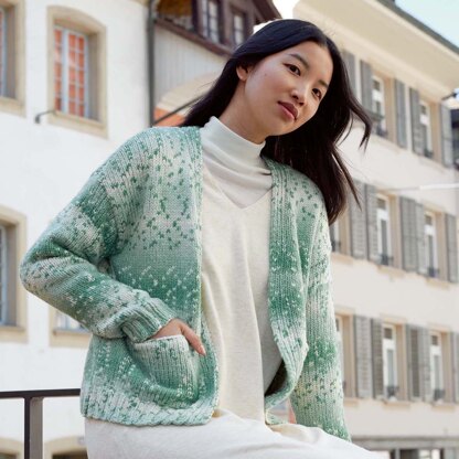 Lang PTO47-02 Cardigan is a lovely open-front women’s sweater knit in Snowflake, featuring dropped shoulders and pockets. This quick knit is worked flat from the bottom up and then seamed. Snowflake by Lang Yarns has the same fluffy and light texture as a real snowflake! This yarn uses a special spinning process to create fun and unique color patterning.