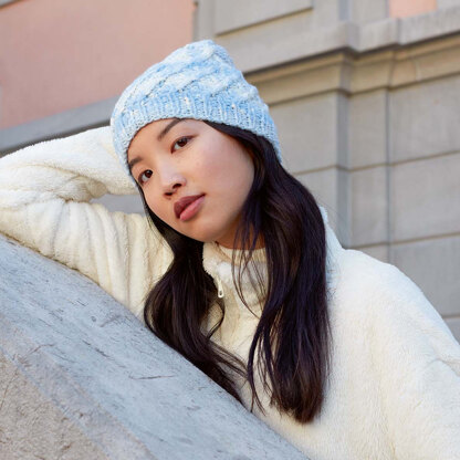 Lang PTO47-04 Hat is a stunning woman’s accessory with several cable patterns knit in Snowflake. The hat is knit flat in one piece from the bottom up and then seamed. Complete the set with the matching cowl by buying it here. Snowflake by Lang Yarns has the same fluffy and light texture as a real snowflake! This yarn uses a special spinning process to make the fun and unique color patterning. The cable patterns are in chart form only.
