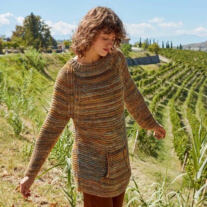 summer yarn. The tunic features an all-over garter stitch pattern, raglan long