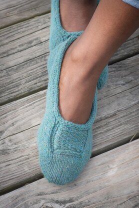 Quick, small, and lightweight, these pretty slippers are the perfect thing to throw in your bag for a weekend away, and a great project for that skein of farm yarn that you just could not resist. The slippers are worked in one piece from the toe to the heel, with a bit of short row shaping to keep them on your feet. You then work around the edge, with the cable panel worked during the edging. Three stitches to graft, two ends to weave in, and you’re done! The toe is worked in the round; the rest of the slipper is worked flat, with the cable panel both written and charted. The pattern includes tips for selecting your yarn, plus illustrated tutorials for the toe-up cast on used in the sample and for working German Short Rows.