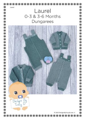 Laurel Baby Dungarees/ Overalls 16 & 18 inch chest. 0-3/3-6 mths knitting pattern