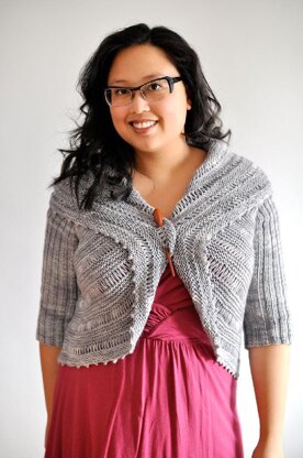 Laurentian is an elegant yet easy to wear cardigan with a fun drop stitch pattern and pretty picot edging. The ribbed back and sleeves are worked seamlessly from the top down, and ensure a comfortable, tidy fit across the shoulders. Short rows shape the curved back hem before stitches are picked up for the collar. The garter and drop stitch collar is knit in the round, and forms overlapping fronts that are wonderful open and draped, or closed with a pin.