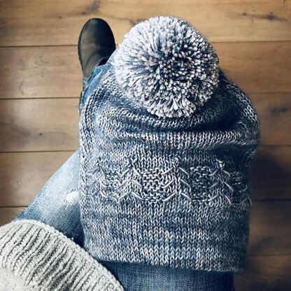 Leni is a casual hat, worked in the round from the folded brim to the top. Combining one strand of mohair lace and one strand of fingering weight merino results in a soft and sumptuous look, but any other yarn that gives you the right gauge will work just fine. The hat is started with a provisional cast on and some ribbing which is then hidden when the main body of the hat is worked. A small delicate band of texture comes next and adds just the right amount of interest. An optional pompom is worked last.