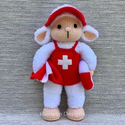 This sweet Lifeguard Lamb is knit in the round, (Intermediate Level), using Magic Loop (or double pointed needles). She is approx. 12” tall, and is created using #3-light wt. (DK wt.) and Aran wt. yarn. Needles needed: size 3 (3.25mm) & size 5 (3.75mm) 32” Circular Knitting Needles (if using Magic Loop). The legs, body, arms, and head are all knit on as you work along. The bathing suit and visor are removable.