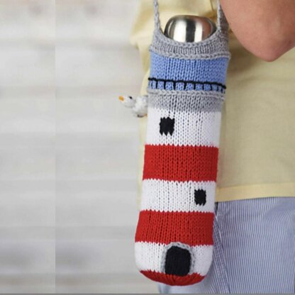 This Lighthouse Bottle Bag has a knitted lining to protect your water bottles from dings or bangs on your travels. The little seagull bird charm is tied onto the bag on fishing line, so it can be removed if you need to wash your bag. Designed by Amanda Berry @fluffandfuzz, this pattern is knitted in acrylic DK yarns using both single pointed needles and in the round using a set of DPNs or circular needle for Magic Loop (whichever you prefer). For confident beginners and above, other techniques used include casting on and off, knits, purls, increases and decreases, and seaming to finish. The lighthouse is 27cm tall x 12cm across, and designed to hold a 500ml water bottle.