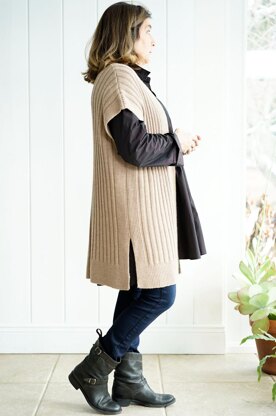 Clean lines and comfortable fit make this easy-to-knit vest a fashionable addition to any wardrobe.