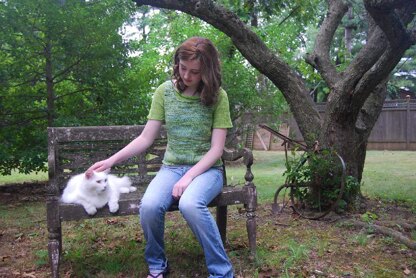 Want an easy layered look? Try this easy-to-knit tee shirt with a draped neck. SImple enough for beginners, the body is made of one strand of dk-weight linen and one strand of lace-weight linen held together, while the sleeves and neck inset are a single strand of laceweight.