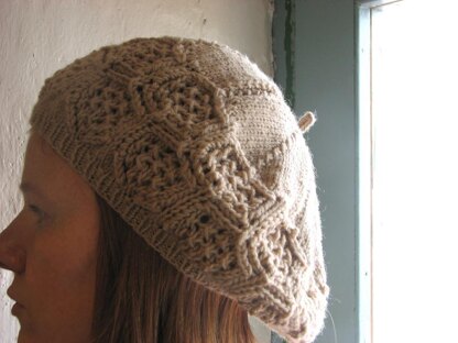 This slouchy beret features a beautiful hexagonal Shetland Lace pattern. Ling is Scottish for heather and Linga means heather covered island in Shetland.